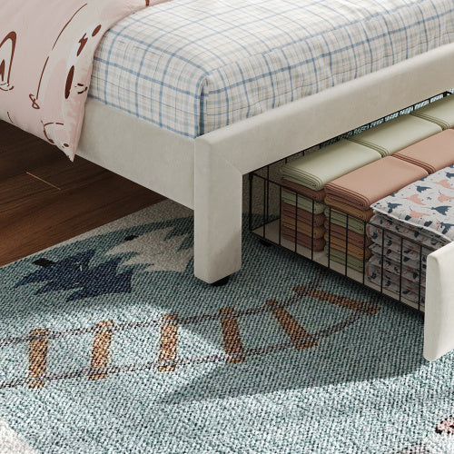 This upholstered double bed is recommended for a 135x190 cm (4ft6), less than 26 cm thick mattress This upholstered double bed are 2 drawers at the end of the bed to provide additional storage space under the bed. There are LED light strips at the head and foot of the bed, both controlled by mobile app. This bed is made of beige velvet and sturdy iron support legs, and the iron bed frame provides long-lasting comfort and durability. The headboard is designed in the shape of a shell and filled with thick and textured sponge, providing a comfortable backrest experience. At the same time, it is matched with colorful light strips to customize different atmospheres.